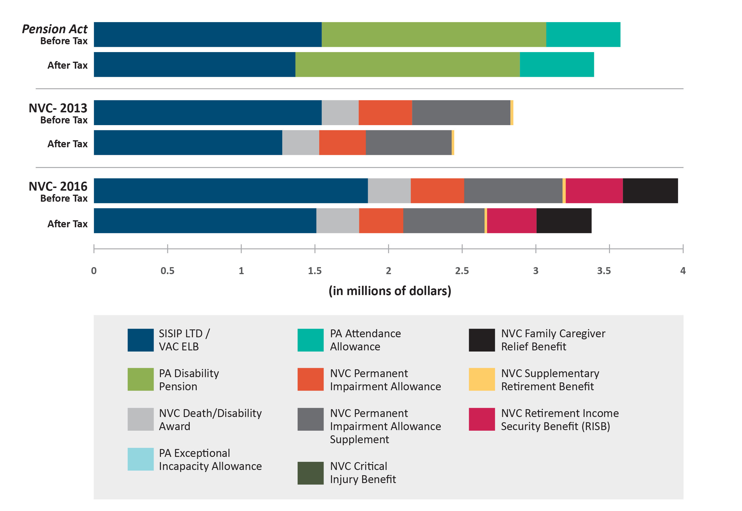 Despite the improvements to the NVC, the Pension Act provides slightly more lifetime compensation (4 percent more after tax than NVC).