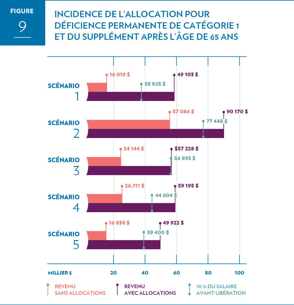 Incidence de l’allocation pour déficience permanente de catégorie 1 et du supplément après l’âge de 65 ans