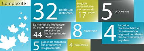 La complexité des critères d’admissibilité distincts de chacun des programmes rend presque impossible la tâche pour un vétéran (ou un membre de sa famille) de déterminer, voire de comprendre, son admissibilité aux prestations. Ce sont les critères d’admissibilité qui déterminent si les vétérans ont droit au PAAC ou aux SLD en général, mais d’autres variables viennent également déterminer s’ils ont droit aux diverses composantes des programmes (notamment l’accès aux subventions pour entretien ménager, aux soins intermédiaires du PAAC, à un lit réservé plutôt qu’à un lit dans un établissement communautaire, etc.). Une communication souvent mauvaise de la part d’ACC sur les services offerts par les programmes et sur les personnes qui peuvent en bénéficier vient exacerber cette difficulté. Le site Web d’ACC compte peu de renseignements sur les composantes du PAAC ou du PSLD et sur les critères d’admissibilité à chacune d’elles. Malgré la possibilité de consulter les politiques, il n’existe aucun guide clair et simple permettant de déterminer rapidement l’admissibilité d’un vétéran. En outre, certains clients disposent de plusieurs portes d’entrée pour accéder aux programmes lorsqu’ils ont plus d’un type de service à leur actif (notamment les pensionnés du service militaire et les pensionnés du service spécial). En fait, la simplification de la prestation des services afin d’offrir un « guichet d’entrée unique et coordonné » figure parmi les dix pratiques exemplaires à inclure dans tout modèle de continuum de soinsNote de bas de page 94.